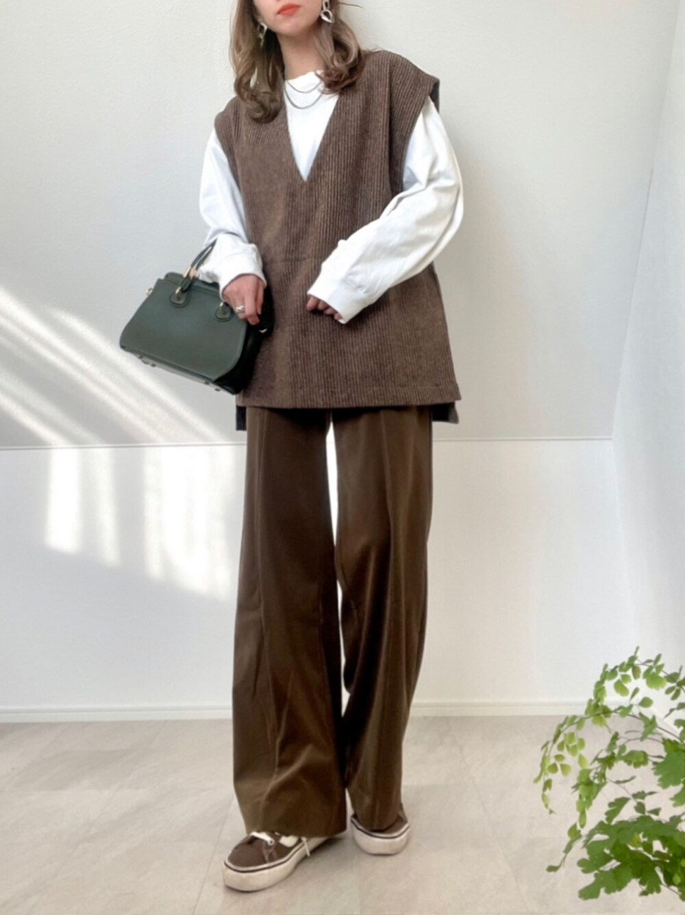 *𝒂𝒎𝒆𝒍𝒊𝒆𝒆*のベスト「【セットアップ可】起毛ストライプVネックベスト」を使ったコーディネート