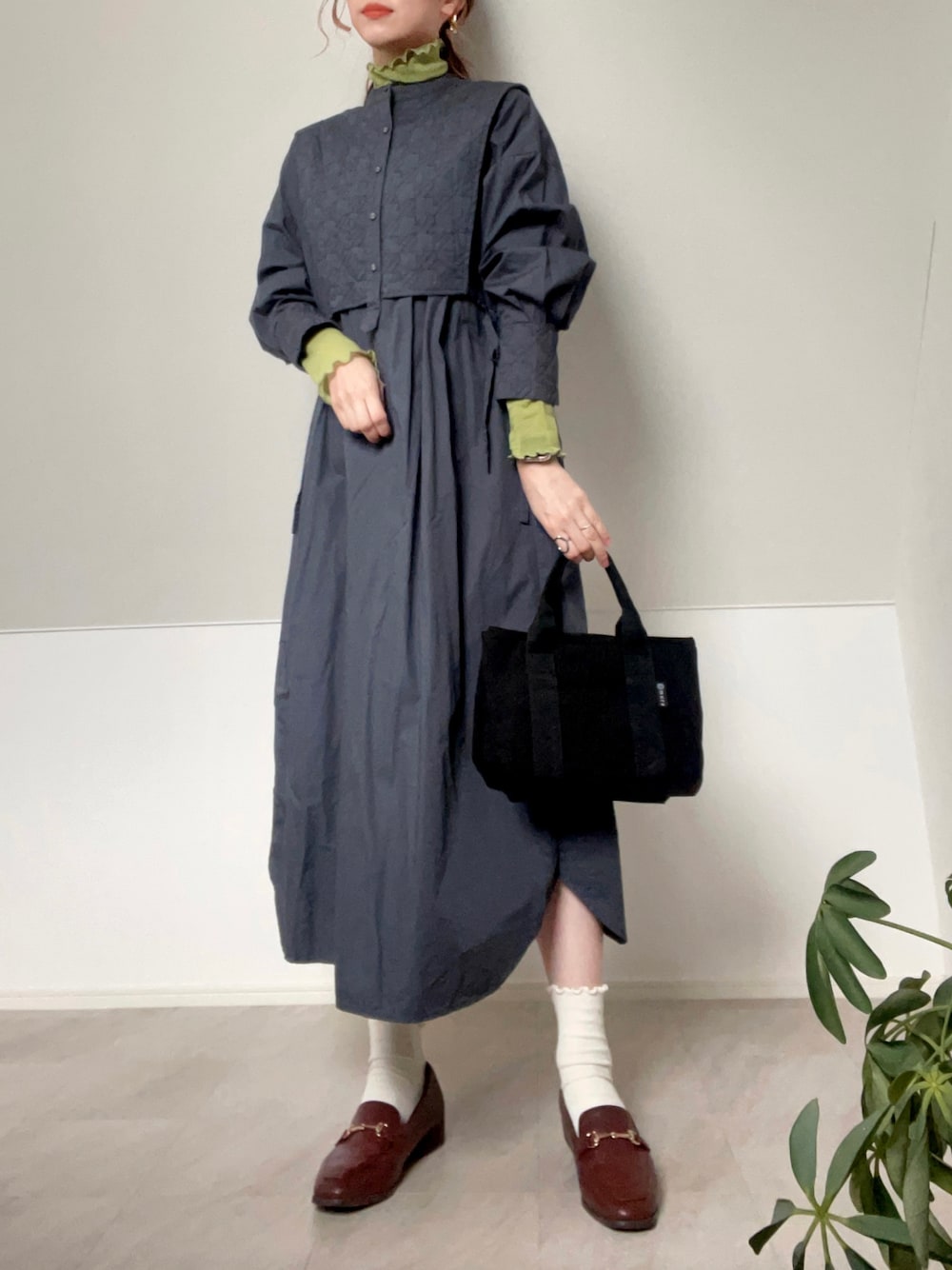 *𝒂𝒎𝒆𝒍𝒊𝒆𝒆*のワンピース「『36サイズ/低身長向けも展開』キルティングレイヤードワンピース」を使ったコーディネート