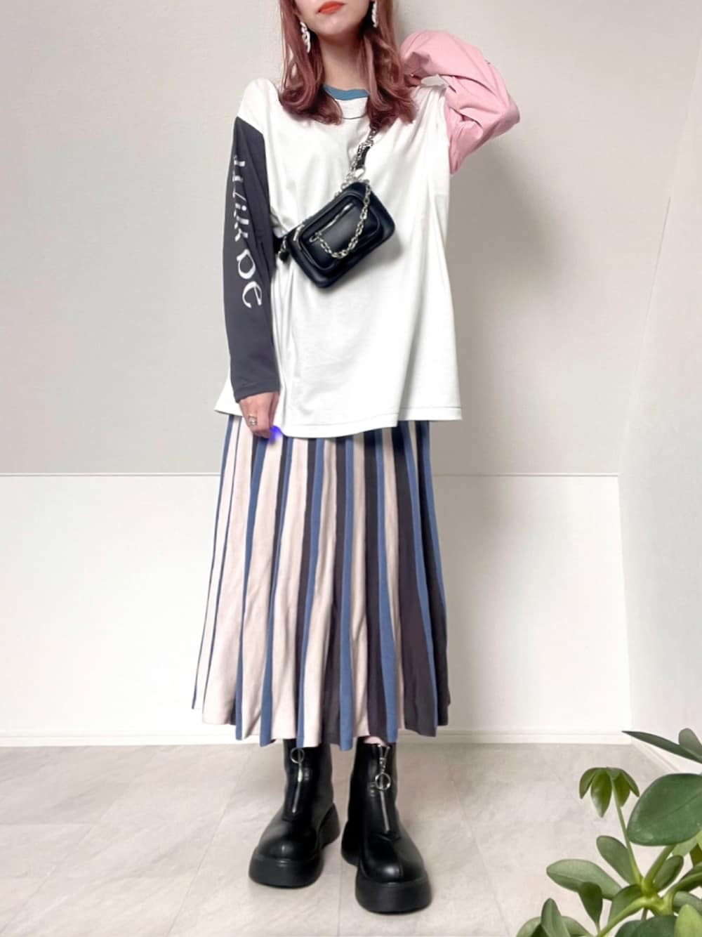*𝒂𝒎𝒆𝒍𝒊𝒆𝒆*のTシャツ/カットソー「袖配色ロゴプリントロングスリーブTシャツ」を使ったコーディネート