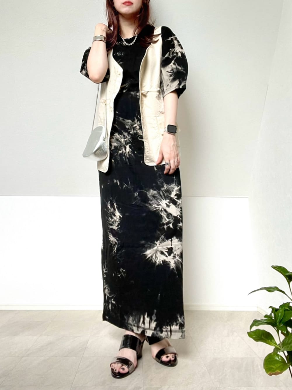 *𝒂𝒎𝒆𝒍𝒊𝒆𝒆*のワンピース「タイダイ配色ドロストギャザーロングワンピース」を使ったコーディネート