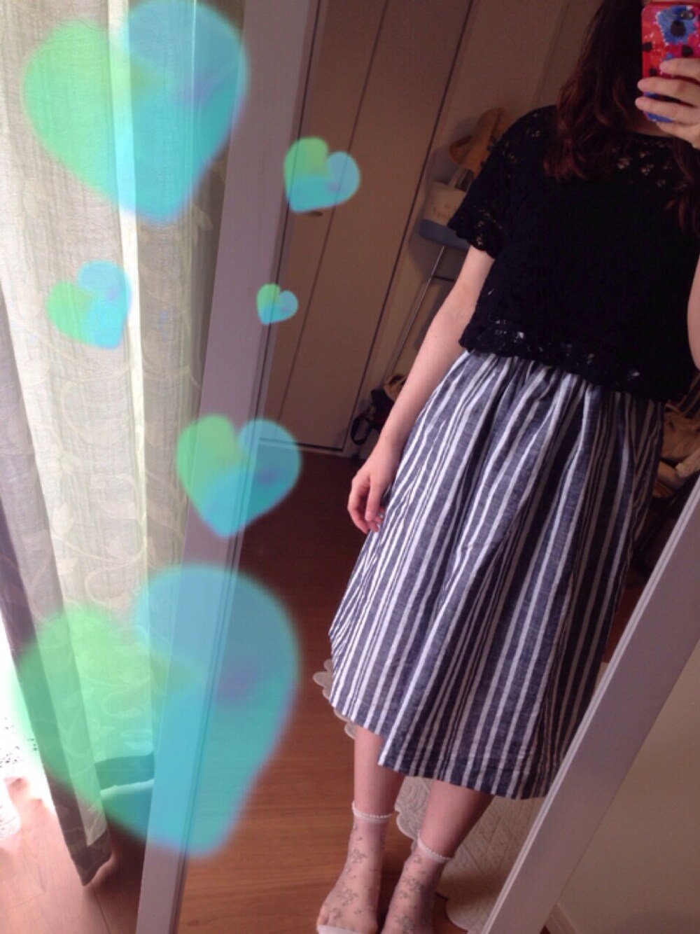 グッモーニン*\(^o^)/* サムライブルーの朝。 悲しいブルーになったけど 素敵な日になるように✩ トップス:ビームス スカート:手作り 靴下:靴下屋 トップスは数年前に買った ビームスのレース。 スカートは数日前に作ったの! なかなか。笑