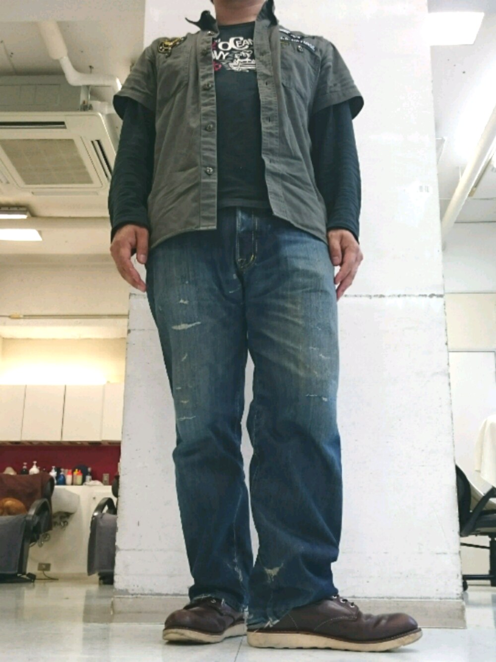 今日は全身ダルチ(笑) デニムは購入してからリペアしまくってもう20年・・・。 修理代で新しく一本買えるくらいになってるけど、そこはもうお金の問題じゃないよね(笑) ブーツは安定のレッドウィングの8134。 写真じゃなかなか伝わらないけど、履きじわとツヤが可愛くなってきた一足(笑)