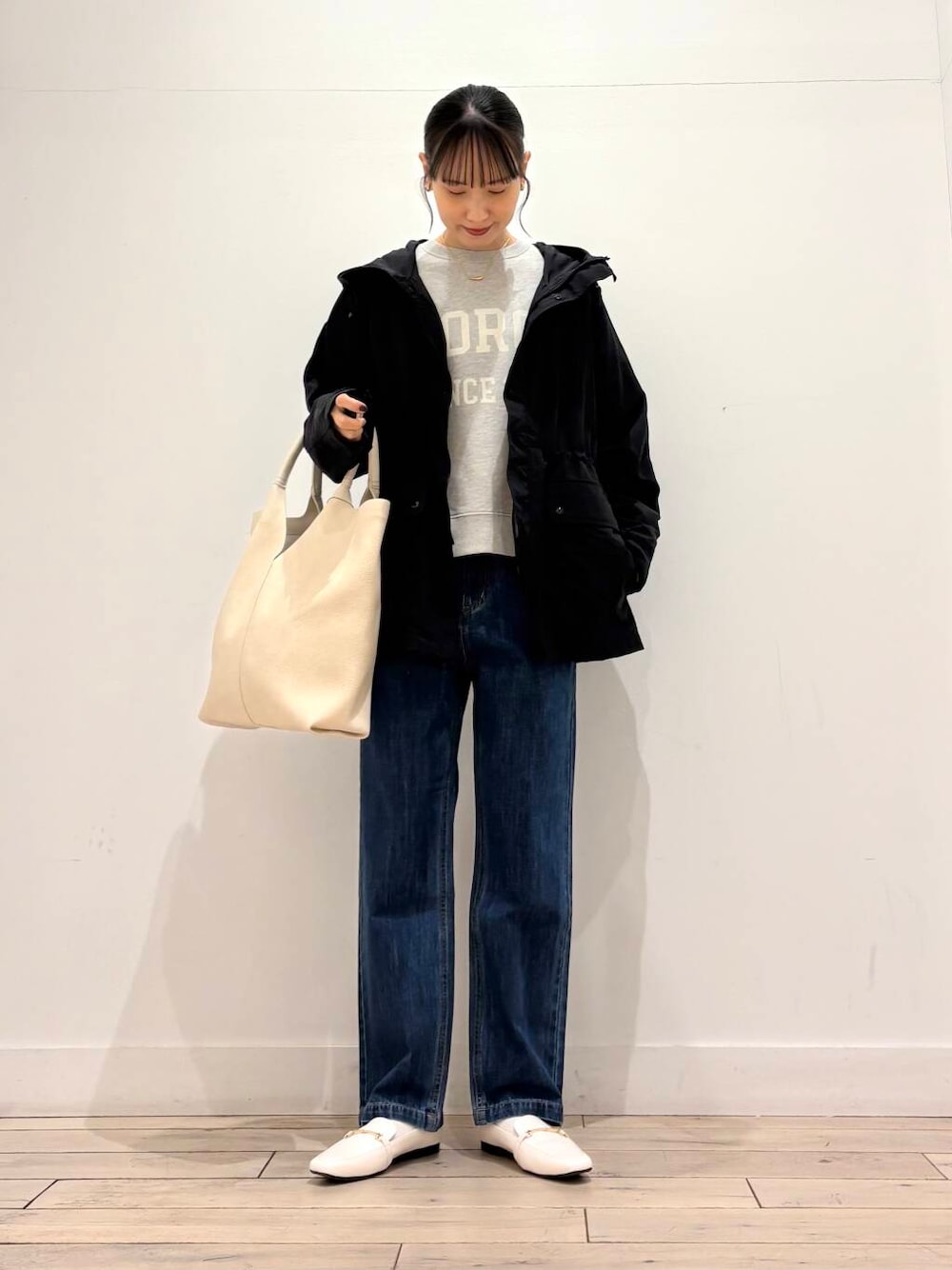 ami(DOORS ららぽーと立川立飛)のデニムパンツ「デニムワイドパンツ」を使ったコーディネート
