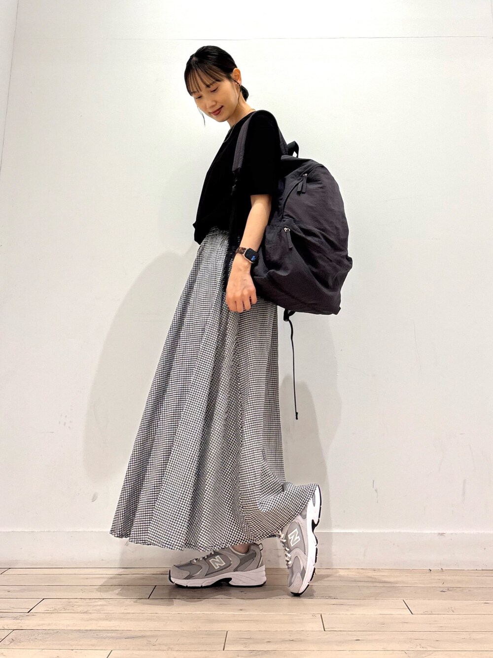 SONNYLABELの人気アイテムでコーディネートしてみました^ ^ トップスはきちんと感もあるオンオフ問わず使える素材感です! 今日はチェックスカートにスニーカー✖️リュックでカジュアルコーデにしてみました^ ^
