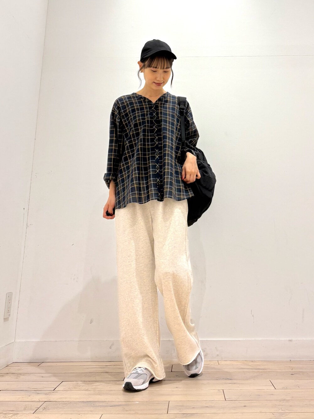 ヘビロテし過ぎているスウェットパンツです! シルエットも肌触りもサイズ感も良くてお気に入りのアイテムです♡160cmで38サイズ穿いてます! 合わせたシャツは首元がVのカットになっていて一目惚れです! シャツはボタンを全部閉めるのがとっても似合わないので、最初から首元が開いていてすっきり見せてくれるデザインは大好物です♡