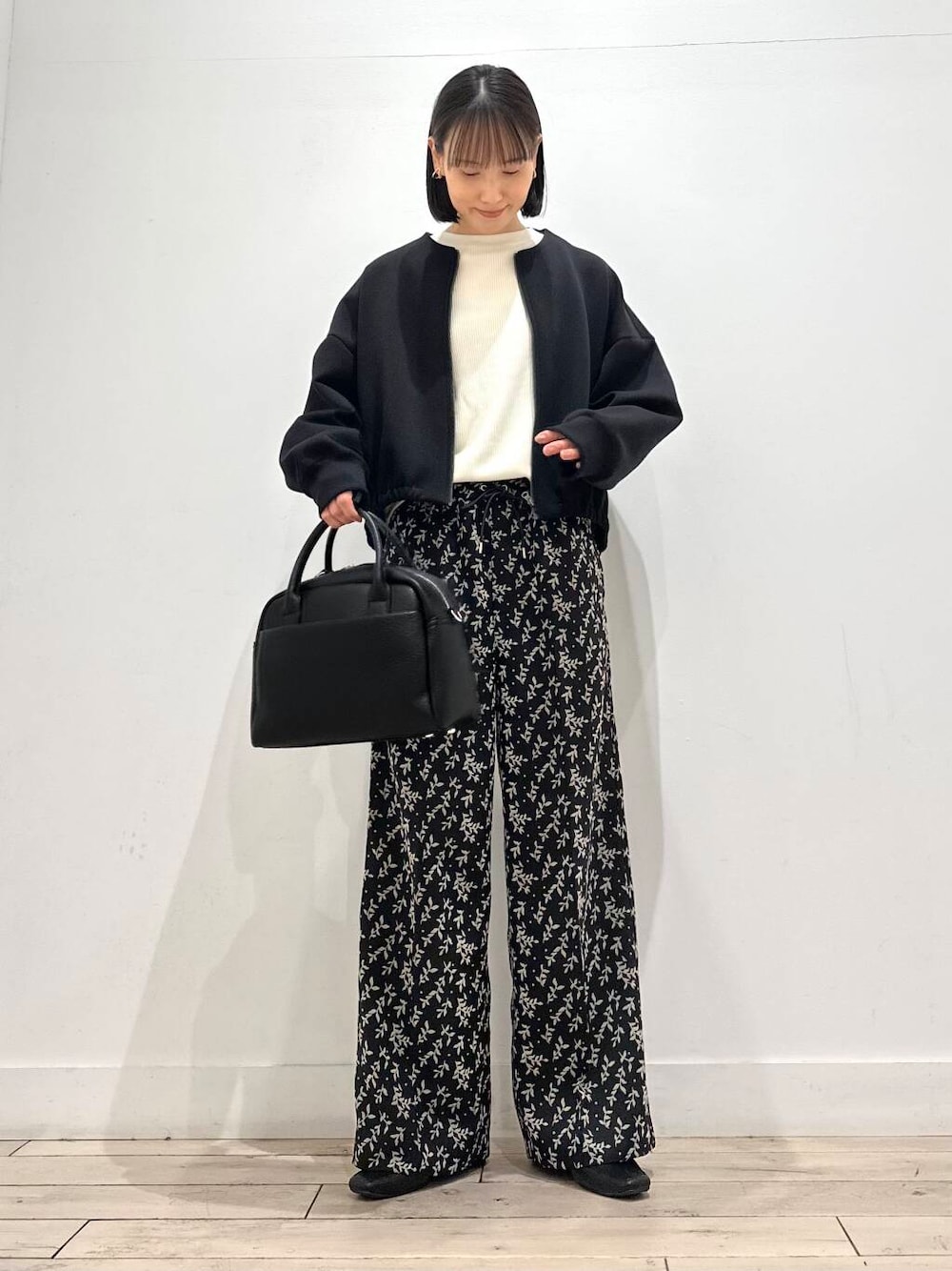 今日のコーディネートはこちらです! 気温が下がってきて、まさにぴったりなコーディネートです! トップスはDOORS定番となった、タックフライスロングスリーブTシャツです◎ 厚すぎず、薄すぎずで使いやすいですし、迷った時はこれを着てれば間違いなしのアイテム。 ボトムスも選びません👍 羽織ったダンボールZIPカーディガンはモチモチの肌触りが◎ 横から見たシルエットが綺麗で、少し後ろが長くなっていて腰回りやお尻もカバーしてくれます! そして一目惚れした、SONNYLABELのフロッキーイージーパンツのBLACKと合わせてみました! 全体的に落ち着いた雰囲気ながらもリーフ柄がポイントになってくれます^ ^