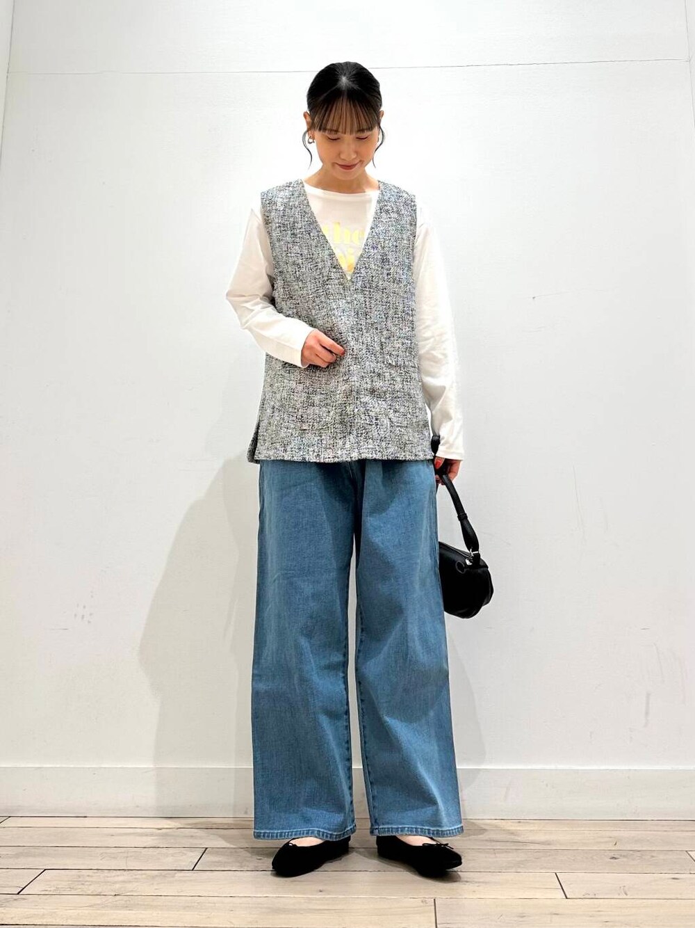 先程の投稿で着用したセレモニーに使えるツイードベストを、普段使いできるようにコーディネートしてみました! ロンTにデニム、どれも自宅にありそうなアイテムと合わせても可愛く着ていただけます◎