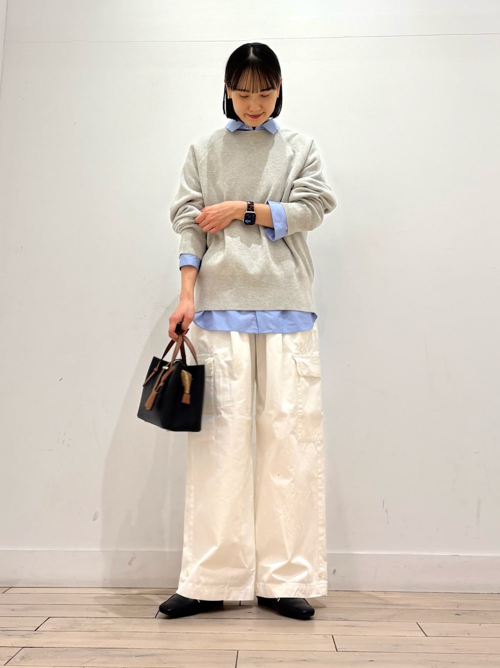 今日はレイヤードスタイルです👏 シャツを入れてあげるだけで、一気にこなれた雰囲気に^ ^ 全色購入したユーティリティパンツはシンプルなコーディネートのポイントになってくれるのでお気に入りです◎
