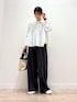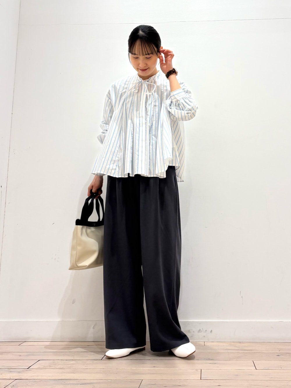 ami(DOORS ららぽーと立川立飛)のシャツ/ブラウス「ストライプリボンフレアブラウス」を使ったコーディネート