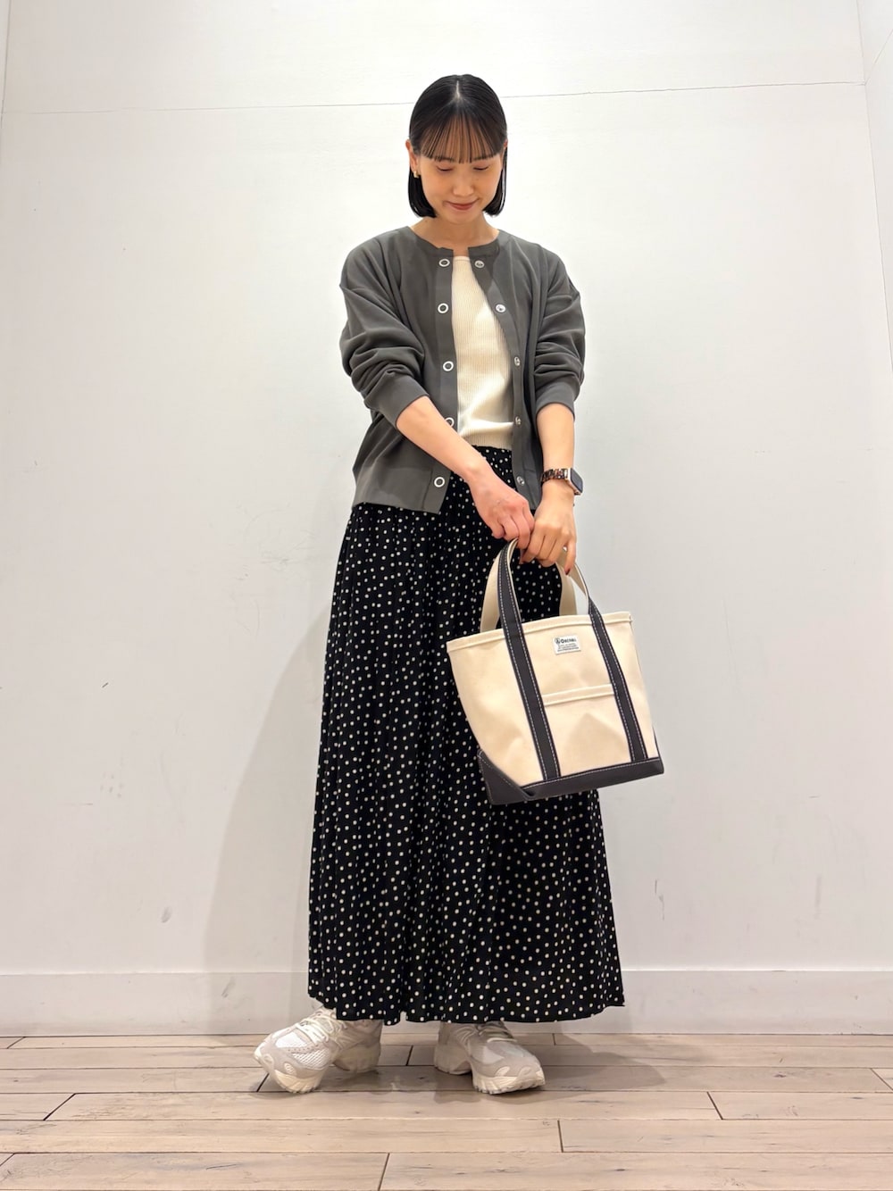 かぐれの人気アイテムのドット柄スカートです! とろみがある素材で広がりすぎません◎ 歩くたびにゆらゆら揺れて華やかな印象に^ ^