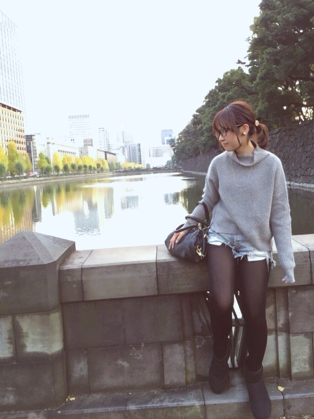 ニット/SHAREPARK ショートパンツ/FREE'S SHOP ブーツ/UGG バッグ/MARC BY MARC JACOBS イヤリング/SHEL'TTER ネックレス/SHAREPARK メガネ/SHAREPARK