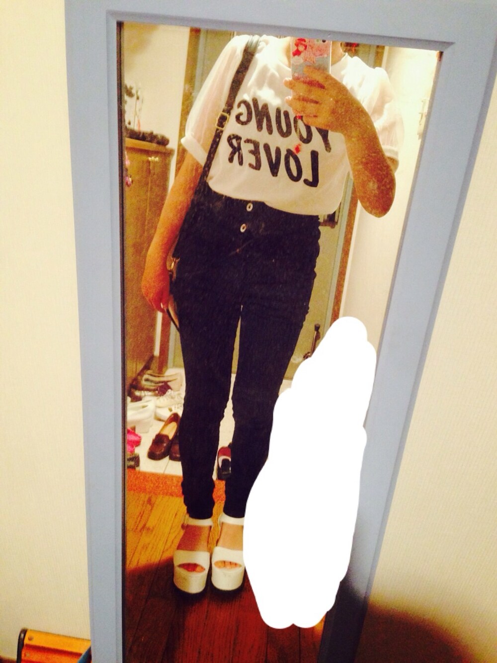 ハイウェストスキニー➡︎g.u. 厚底サンダル➡︎GRL トップスの透け素材の部分が チクチクします...
