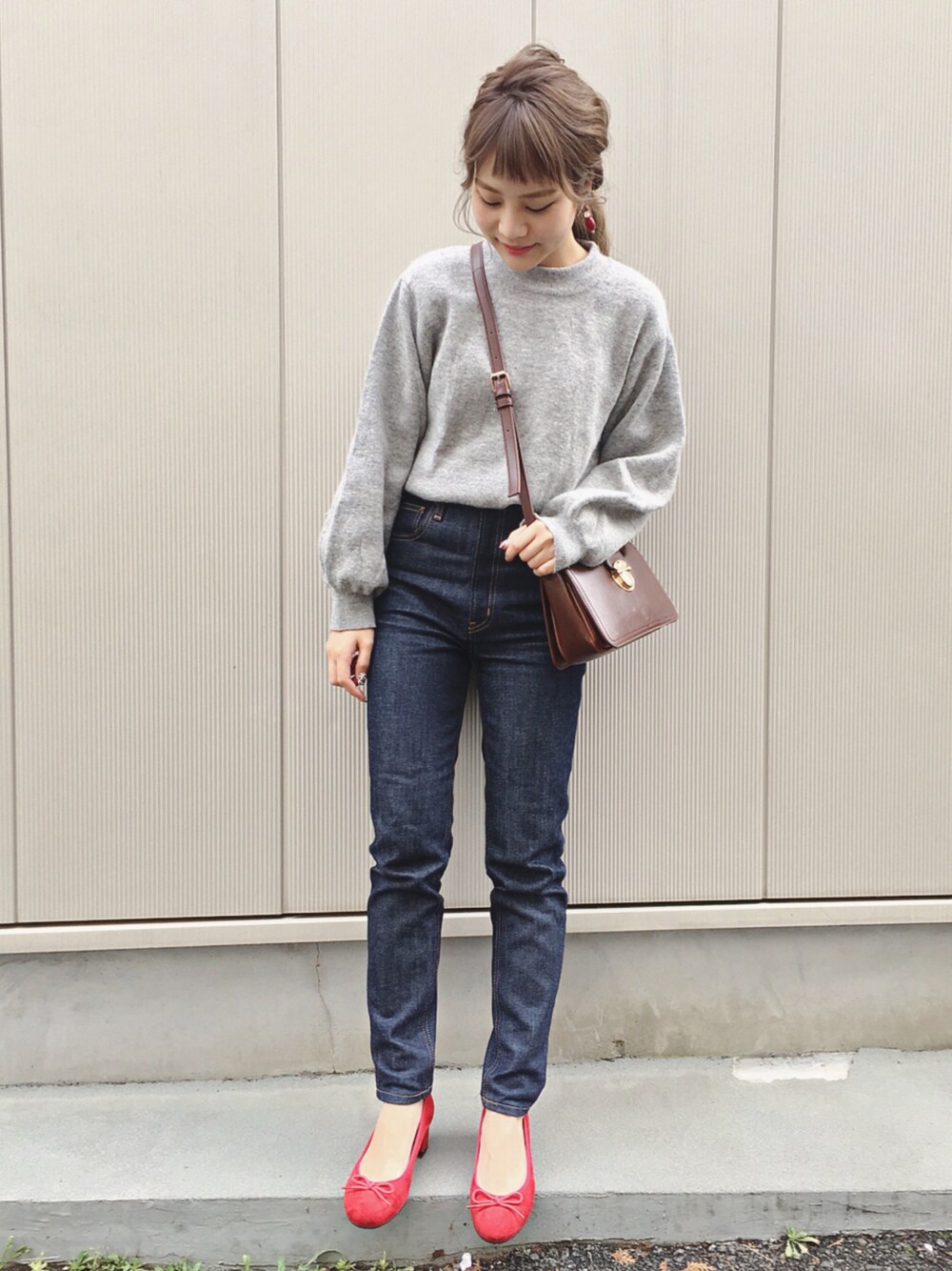 安中亜美のニット/セーター「KBF+ アンゴラ袖ボリュームニット」を使ったコーディネート