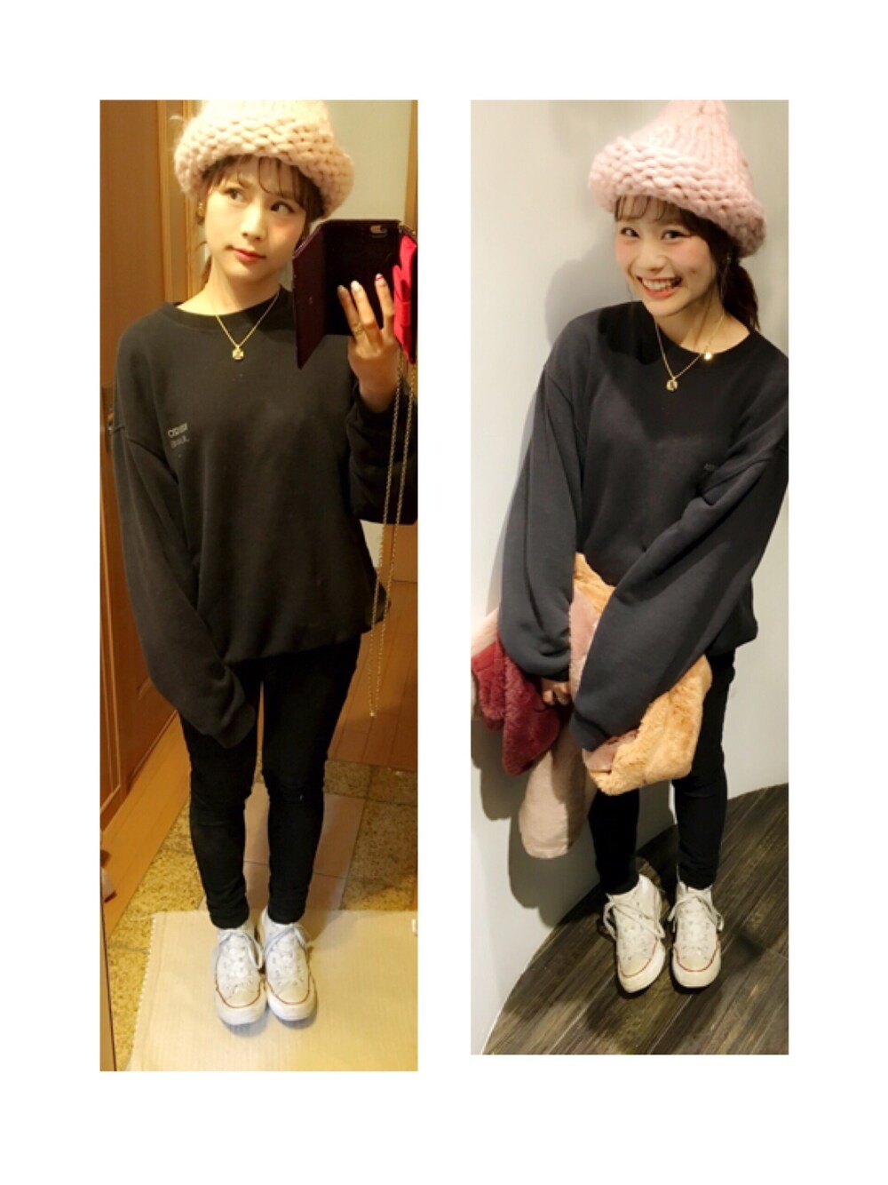 12/27 最近黒にハマってる 🙆 ケンゾーのスウェットお気に入り 🙌 Black × pinkの組み合わせ 🌷👍🏻