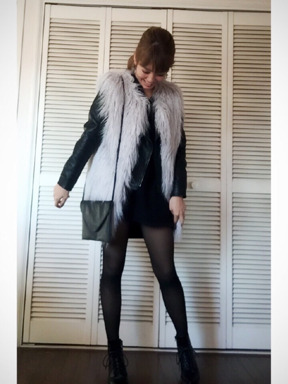 ファーーーーーー😻❤️❤️ このモフモフ感たまらん🙈✨ GUはXLをワンピぽく👗✨ 感謝祭で激安でげっとん💰💰💰 今日はタイツでがんばれた🙈