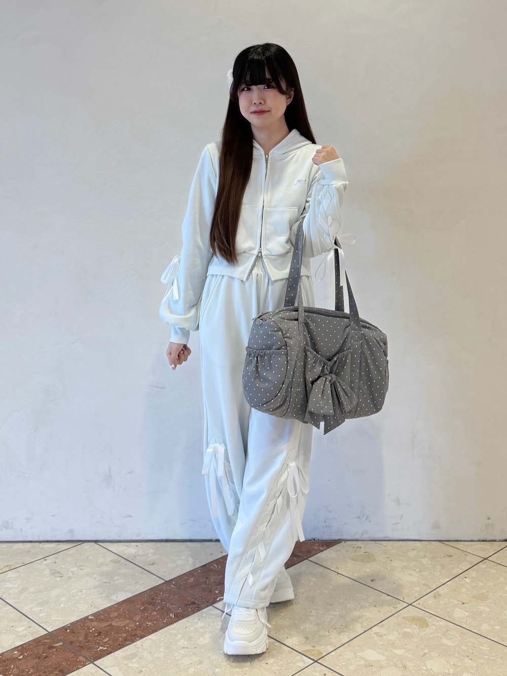ami(OLIVE des OLIVE HEP FIVE)のパーカー「袖レースアップジップパーカー」を使ったコーディネート