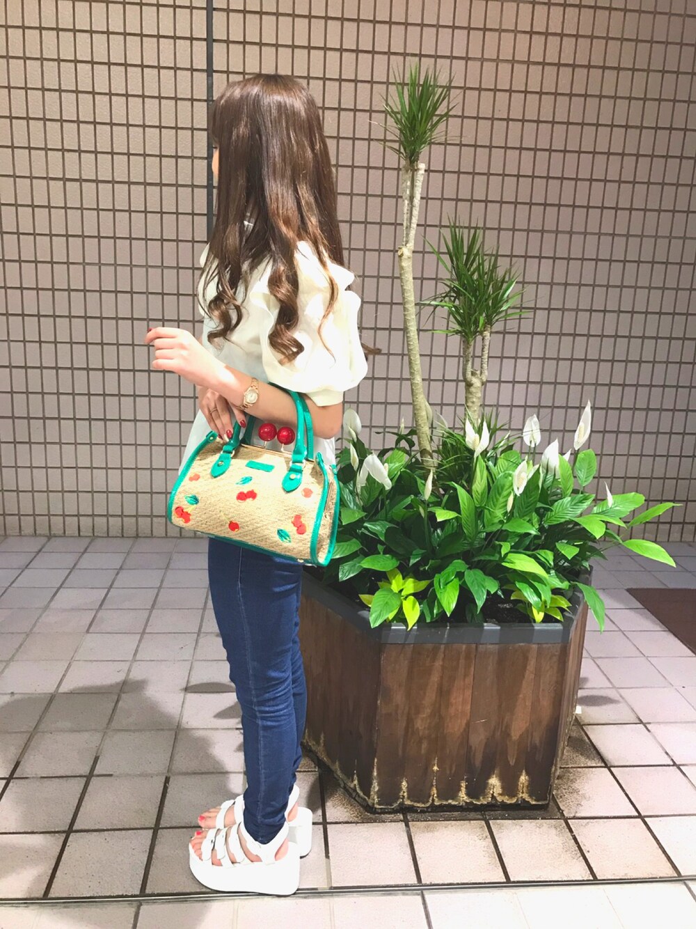 夏らしいコーデにさくらんぼが可愛い バックを合わせました👜🍒💕 がま口の所がさくらんぼみたいに なってるのがすごく可愛いです🍒😍 バックがシンプルなコーデの アクセントにもなります👗✨🍒 バックはこれから夏などに大活躍 すると思います✨