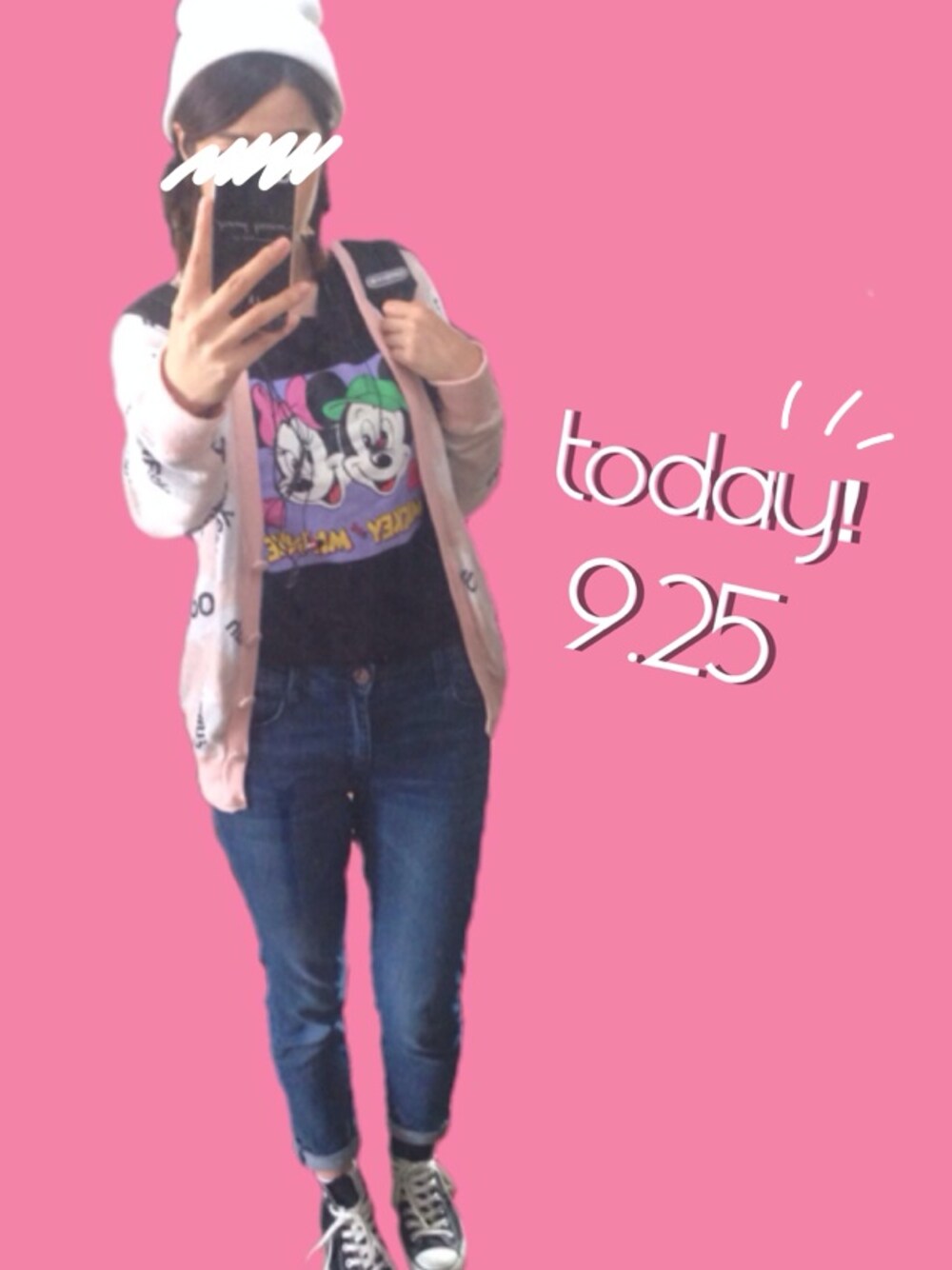Tシャツ/merry jenny カーディガン/jouetie パンツ/H&M スニーカー/コンバース 今日はカラオケ! らくちんコーデです。