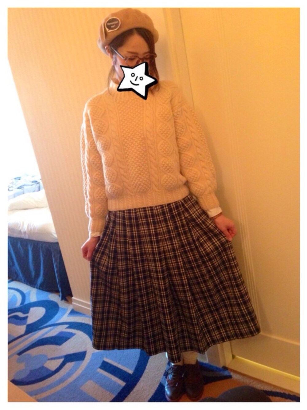 ニット/USED シャツ/LOWRYS FARM outlet スカート/merry jemny お泊りディズニー2日目はランドのため あったかコーデ。 このフィッシャーマン ほんとにあったかいのです! 前日に買ったキャンディーのピアス、 かわいすぎて早速つけました...♡ アウターはジーナのチェスターコート!