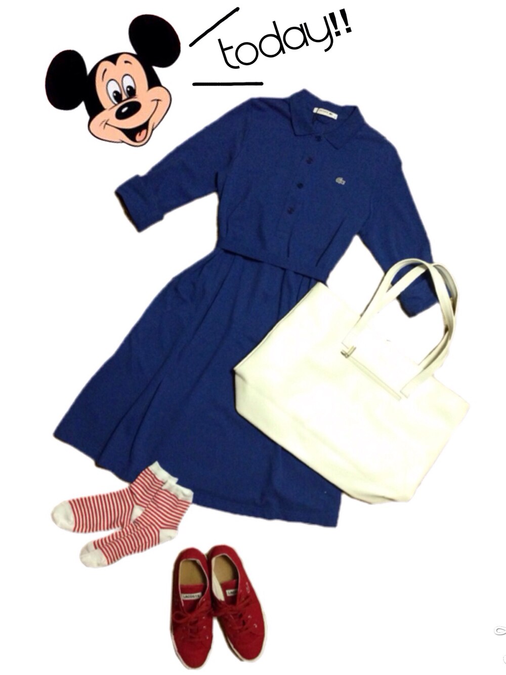 ワンピース/LACOSTE 靴下/靴下屋 スニーカー/LACOSTE バック/merry jenny(ノベルティ) マリンコーデ! でSEAにきました。二週連続。