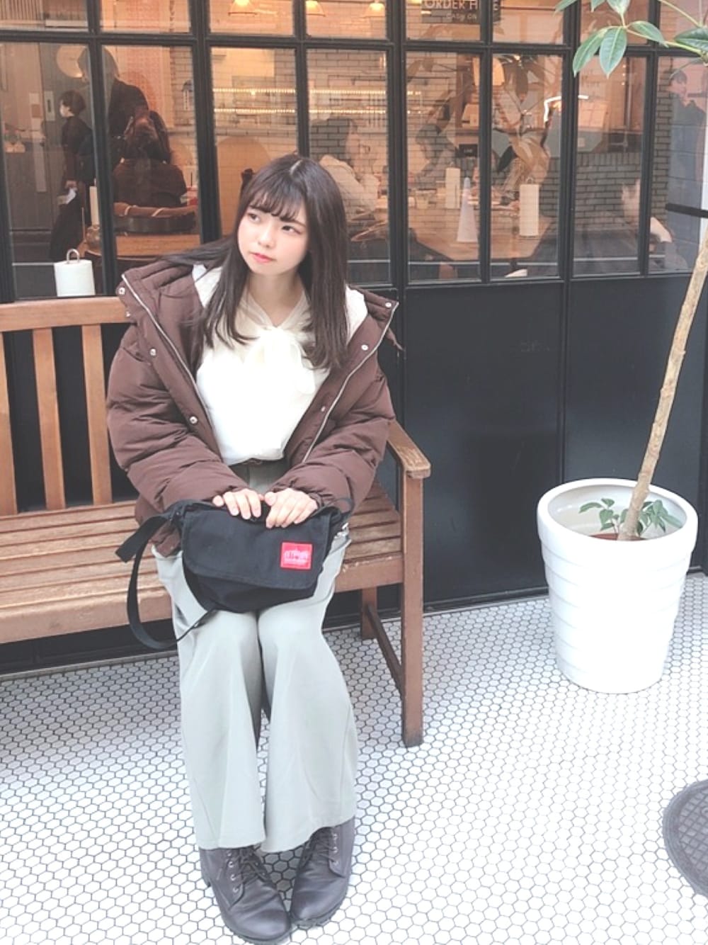 みどりのパンツがお気に入り。 ブラウスはmellowneanのです。チュールのリボンが大きくてアクセントなのと、ダウンを脱いでも袖もチュールになってるのでボリュームあってかわいいのでおすすめです。𓂃 𓈒𓏸