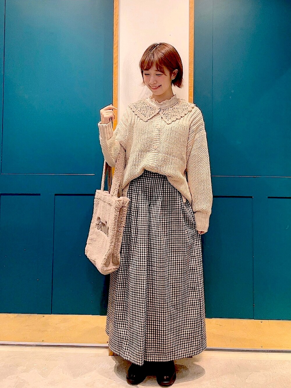 コンドウのトートバッグ「ロゴ刺繍ボアトートバッグ」を使ったコーディネート