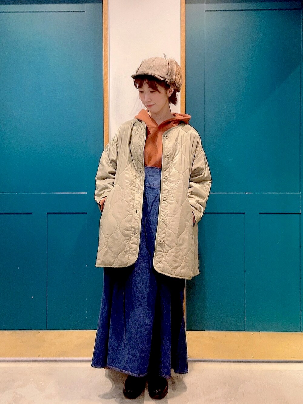 コンドウのブルゾン「ノーカラーキルティングブルゾン」を使ったコーディネート