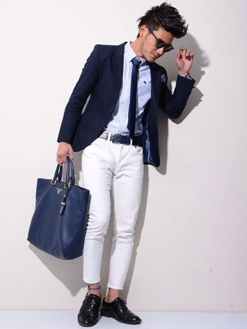 Jacket → A|X Shirt → Brooks Brothers Tie → United Arrows Pants → A|X Shose → Regal Bag →PRADA