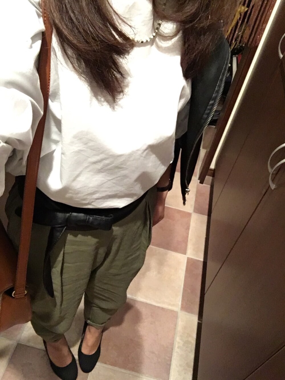Ami*のライダースジャケット「SSフェイクレザーライダース 714200」を使ったコーディネート