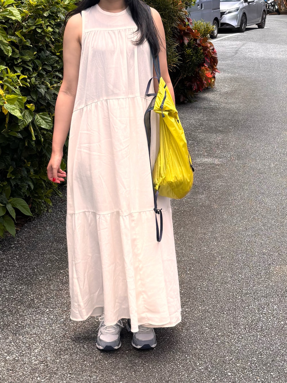 amingoのワンピース「【サイズ展開あり】バックシャンティアードワンピース」を使ったコーディネート