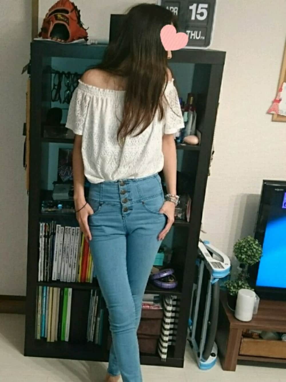 あみのデニムパンツ「ハイウエストタイプ美脚リラックスストレッチスキニーデニムパギンス/デニムパンツ/ボトムス[CHICMUSE]」を使ったコーディネート