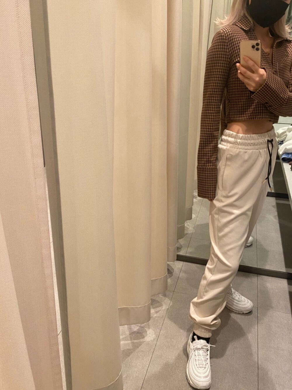. 下はスウェット生地でラフに見せつつ 上は襟があるので綺麗めに見えて ラフすぎないコーデ .