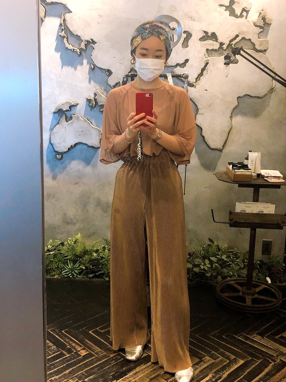 ベージュ系でまとめて、柄ターバンをポイントにしました。 シルバーの靴はどんな服でも合うし、重く見えず少しエッジが効くので大好きで重宝します🤍