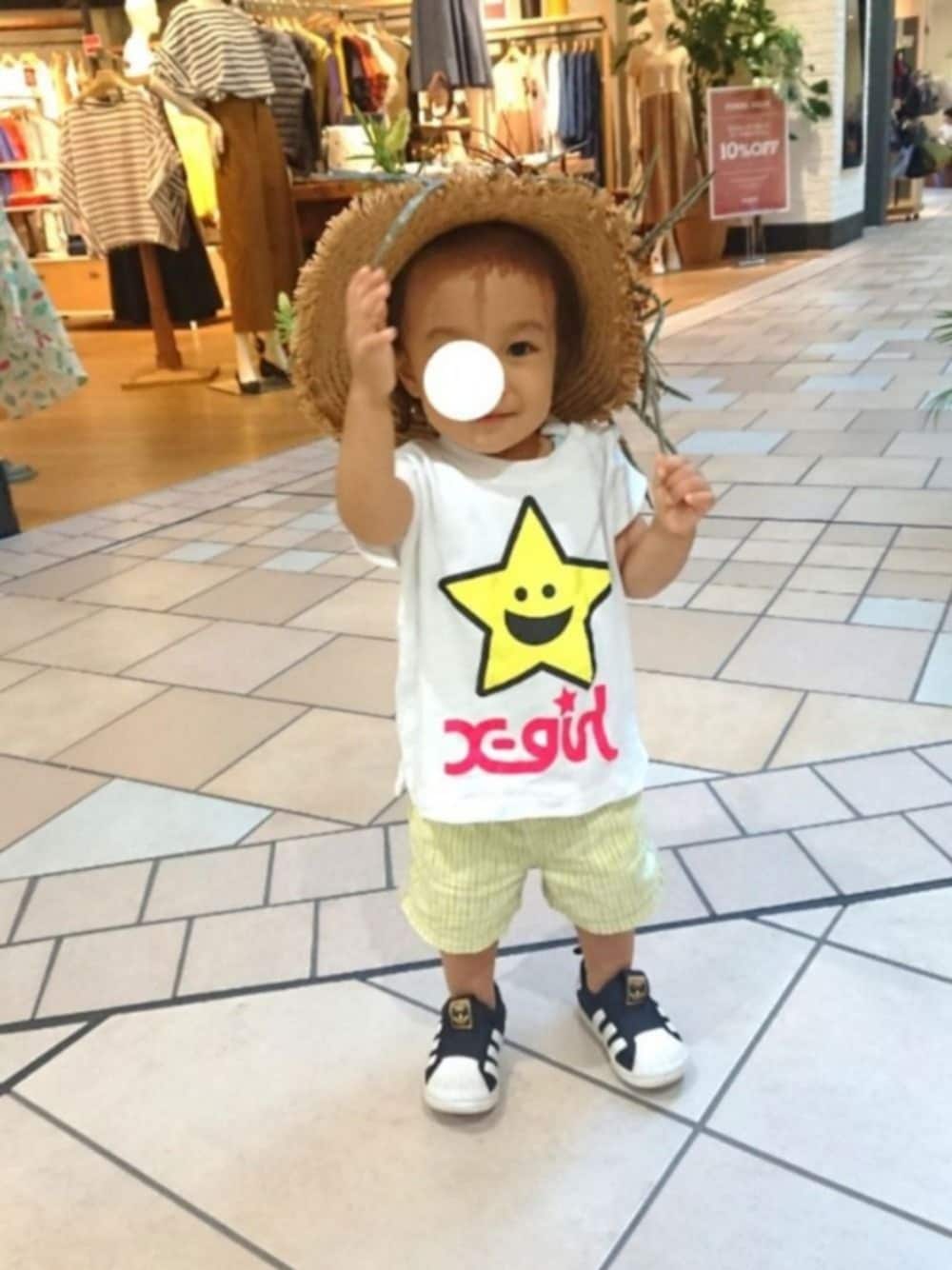 ショッピングモールで「撮影用にご自由にお被り下さい」とかわいい麦わら帽子が置いてありました😆 x-girlのタンクトップはsaleで♥️