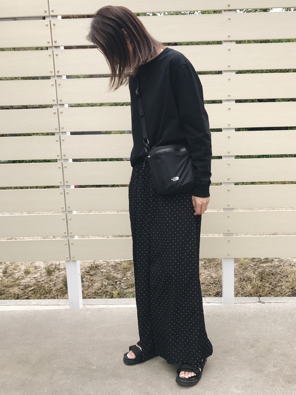 ドット柄をall blackで❤︎ Instagram→_by_ami