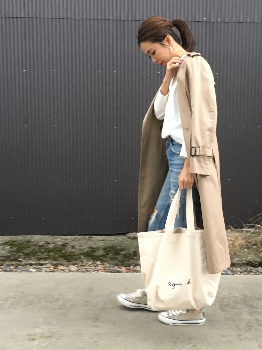 amiのトレンチコート「60/2ギャバ ノーカラートレンチ#」を使ったコーディネート