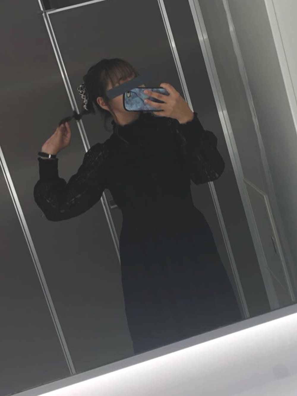 レースのワンピース( ¨̮ ) 可愛くてお気に入り。 髪の毛アップにすることで可愛すぎない感じにしました( ¨̮ ) 足元もすねくらいまでの丈で黒のソックス、マーチンIIIホールであざとく( ¨̮ )( ¨̮ )