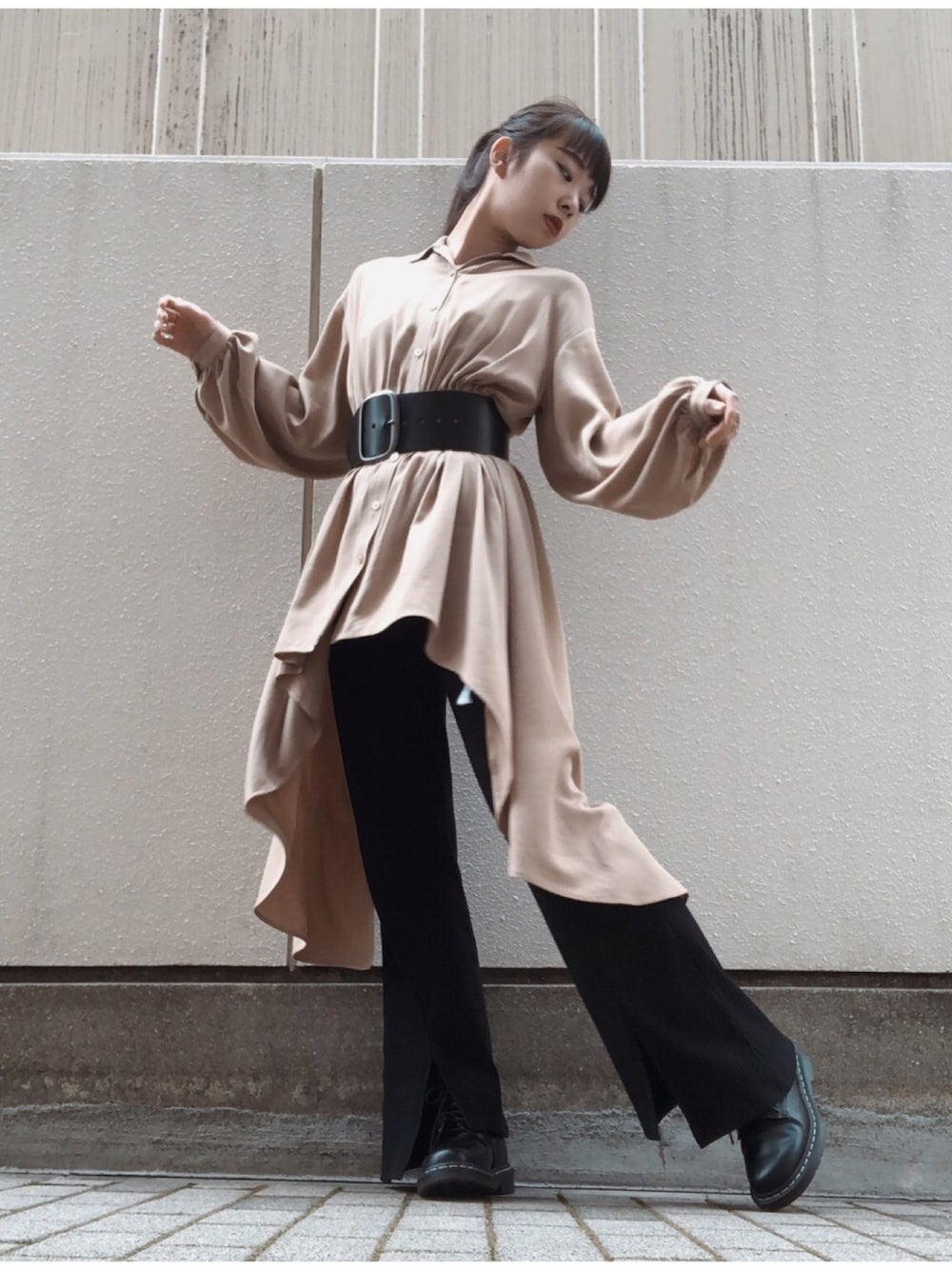 このシャツ、後ろがパックリ。 すっごく可愛い♥️ 色もベージュだから着やすい!