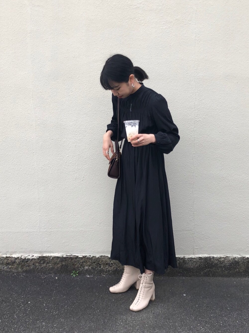 珍しくワンピースの日。 流行りのサテン素材。 形が凄く可愛い!! 冬はコートを上に着てたけど、 春は一枚で着れるから嬉しい😆🤍
