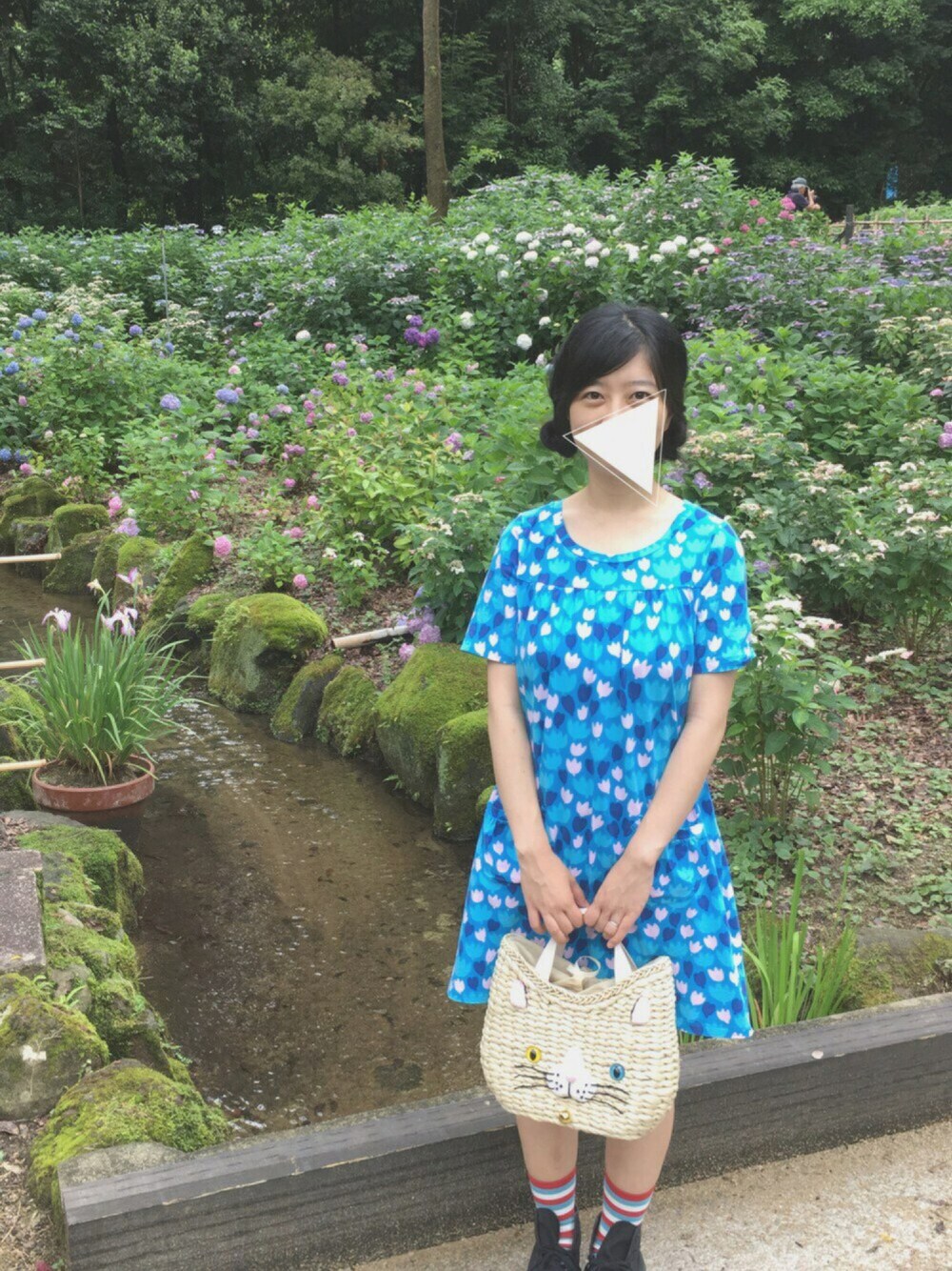 家族であじさい見に行きました(^^♪ 息子くんなぜか途中泣き出して いそいで見ました( ´-` ).。oO笑 marimekkoのワンピースは 得意のusedです♥️ 2012年頃のものっぽい。 美品なのに3000円くらい! 「小さなベル」というタイトルで 鮮やかなブルーにさりげなくピンクで 配色がツボでした( *ˊᵕˋ)ノ
