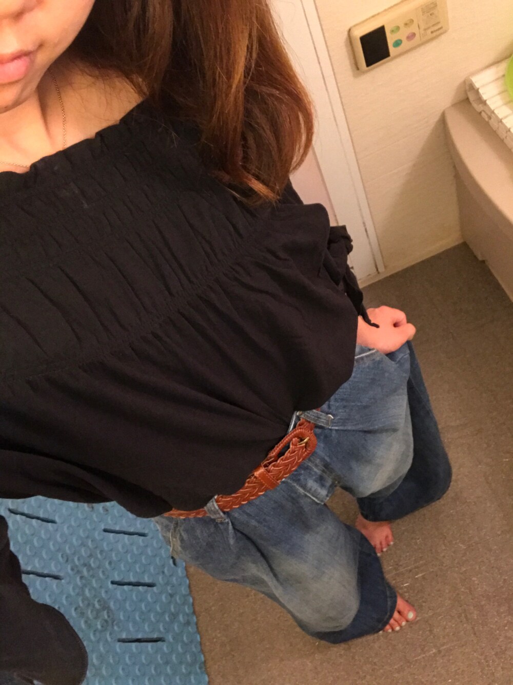 初オフショル。 肩上がってくるの厄介やけどかわいかったし買っちゃった(*´◒`*) 明日から仕事ふぁーいっ お風呂場でパシャり。ごめんね〜〜