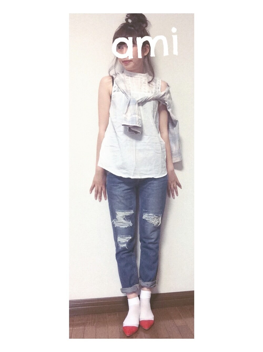 トップス:ZARA シャツ:Lee デニム:Lee 本日も、ゆる〜いコーデ おだんごくっしゃくしゃ!笑 ♡