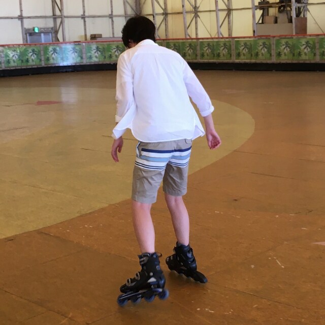 写真のへっぴり腰でローラースケートをしてるのが私です。