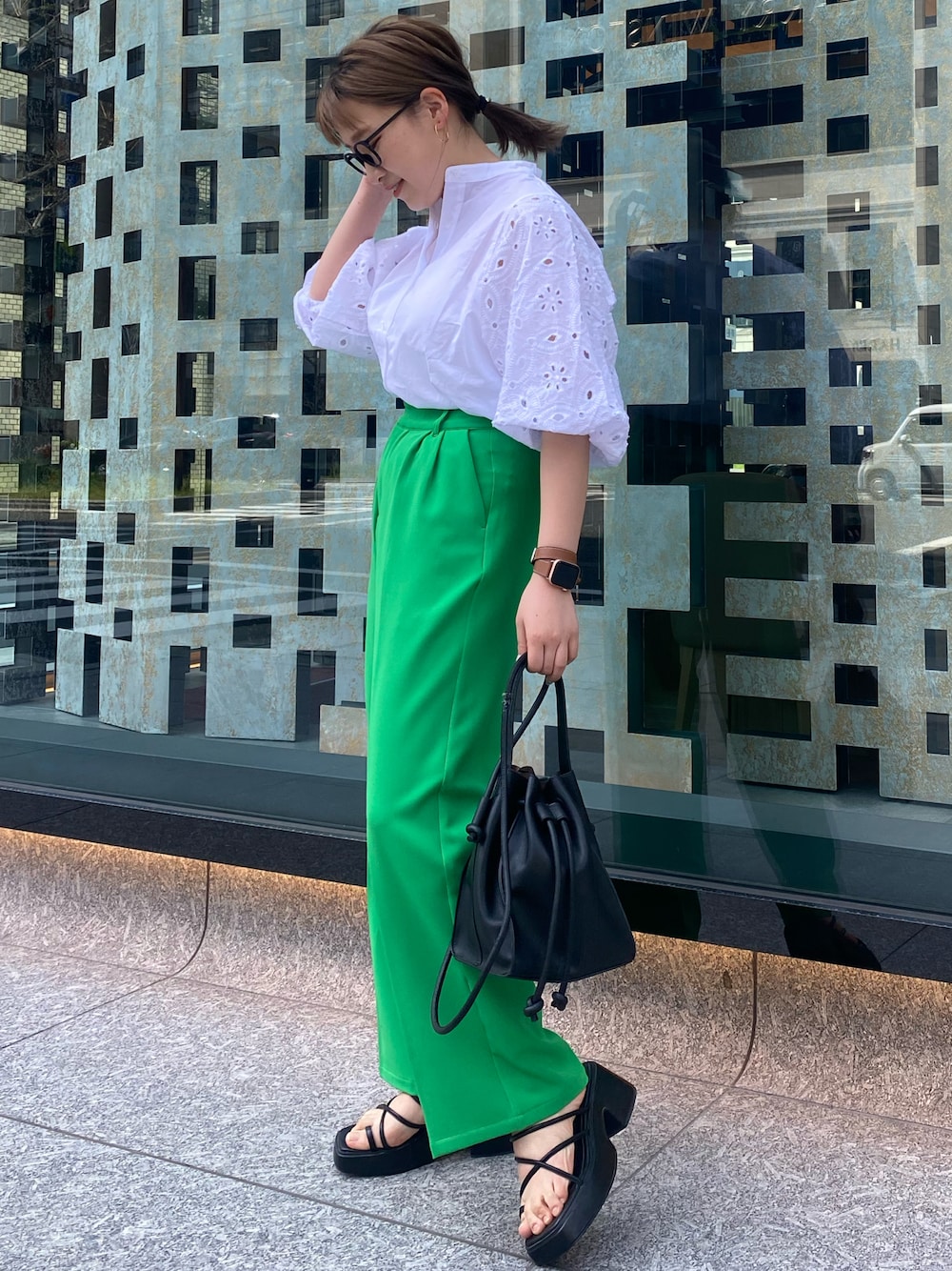 Amiのシャツ/ブラウス「【累計販売枚数4万枚突破!】コットン刺繍レース ボリュームスリーブスタンドカラーブラウス」を使ったコーディネート