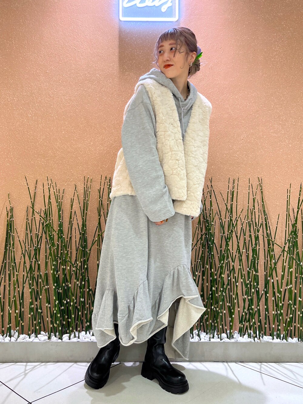 あみこ( wcloset 本社スタッフ)のジャケット/アウター「★先行予約★フェイクファーベスト【8月中旬入荷】」を使ったコーディネート