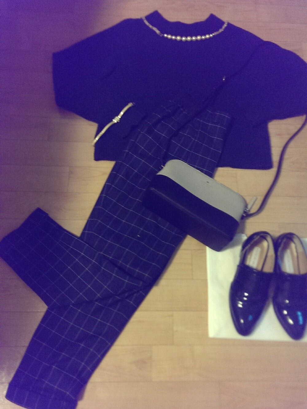 いつも明るい色が多いので、今回はオールネイビーコーデ🙌