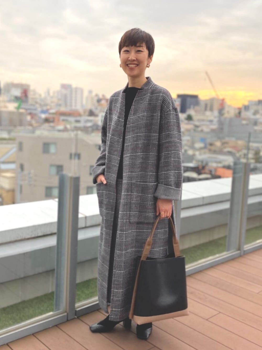 Amiのその他アウター「チェックリバーウールコート」を使ったコーディネート