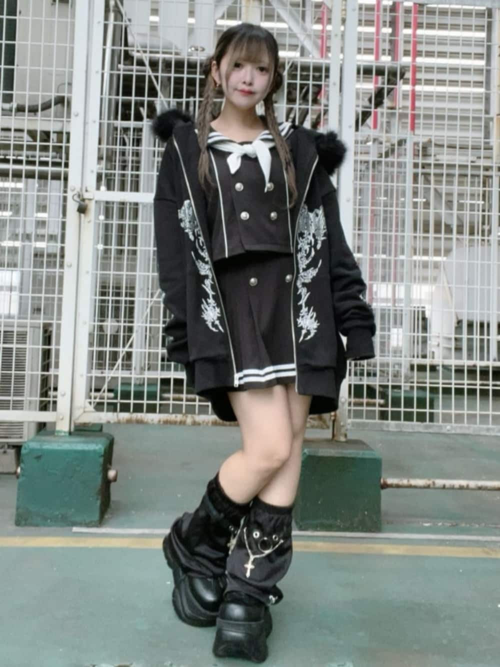全身黒で統一しててもセーラーを着ることで かっこいい強い雰囲気になりすぎず バランスのとれたコーデになります! もっとかわいいをプラスしたい時はニーハイやヘッドドレスなどのアイテムを合わせるのもすおすすめ!