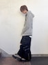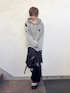 流行りのウォッシュ加工が施されたパーカーコーデ♪♪ バックには大きな十字架、フードにはAmiligeロゴと十字架がプリント。肩にはアクセントにスタッズが付いて、ZIPを開けて着ても可愛い♡♡ ゆるっとルーズなシルエットパンツと合わせてジェンダーレスコーデの完成です✧*。