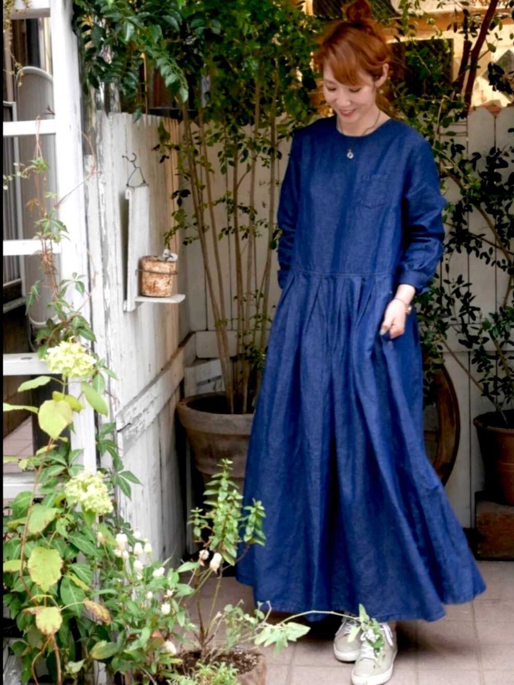 シンプルなデニムワンピースはリネン素材でシャラリと大人ナチュラルに✨
